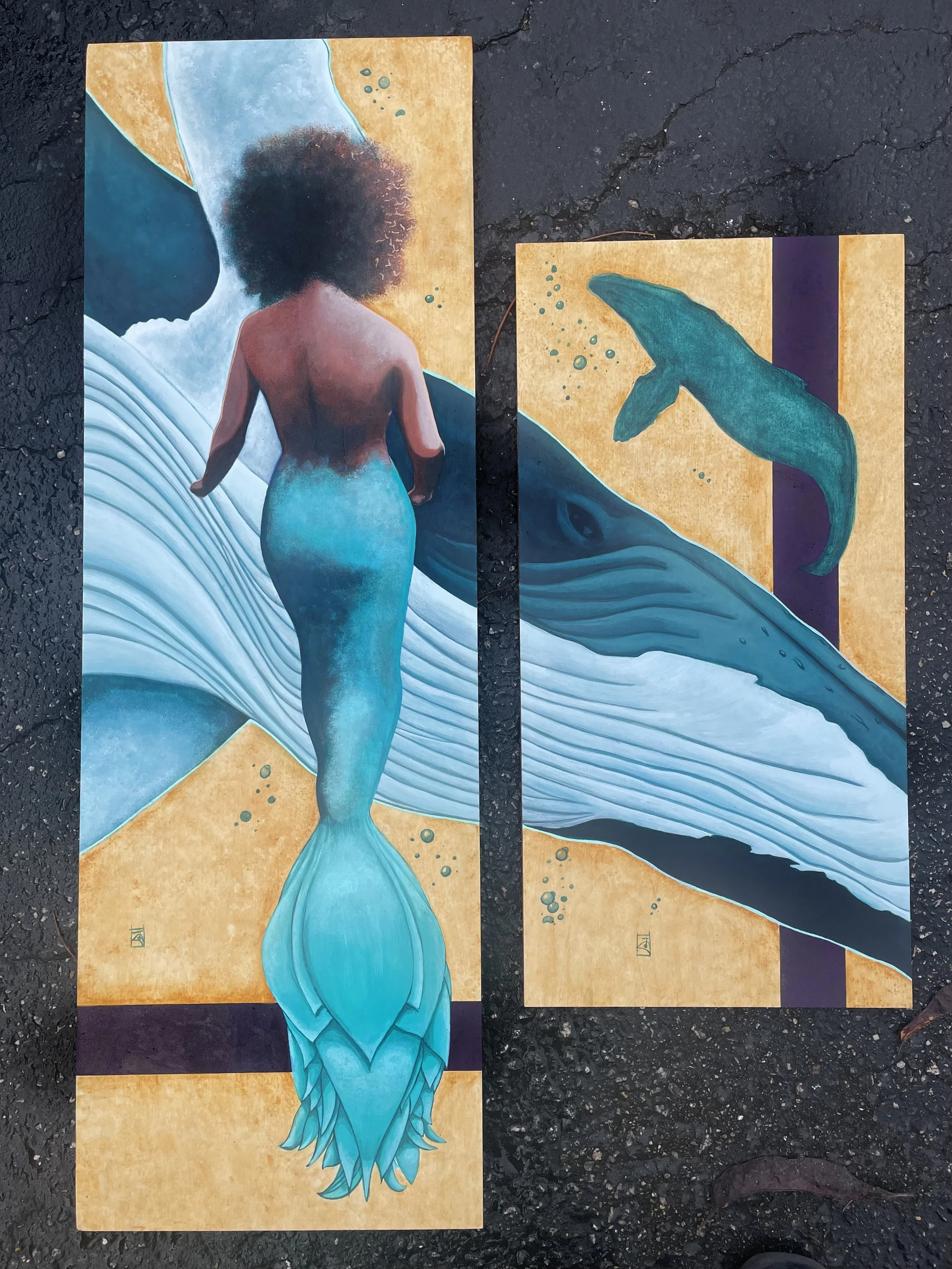 As a child, Mia loved mermaids and competitive swimming, but fell in love with the ocean after living on the coast as an adult. She has dedicated her artwork to bringing the beauty of the sea to everyone and sharing her passion for better marine life conservation. Mia currently lives in Lorton, VA with her partner and 3 cats.