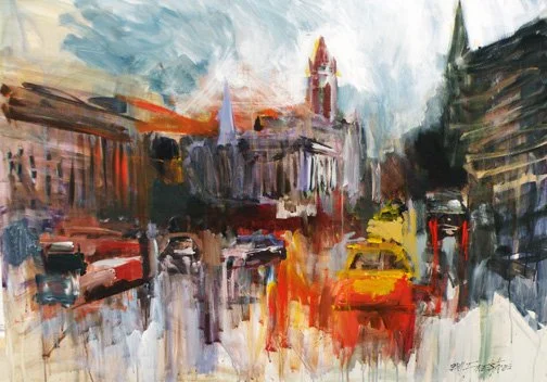 Bill is influenced by the "push pull" philosophy of Hans Hofmann, having been taught by two of his pupils. Bill's paintings are described as vibrant and energetic. His loose style lends itself to his fondness for rural scenes but also the beautiful rainy street scenes of big cities.