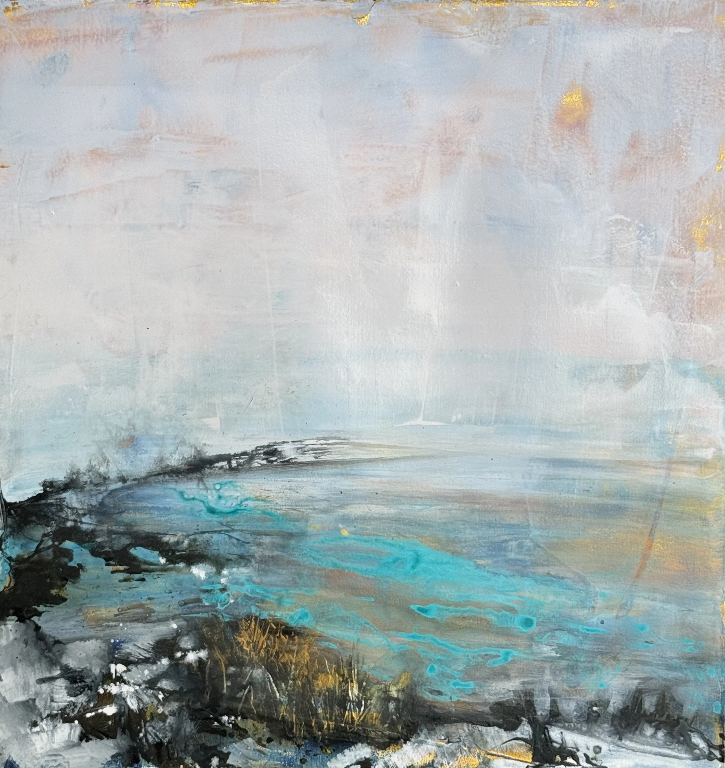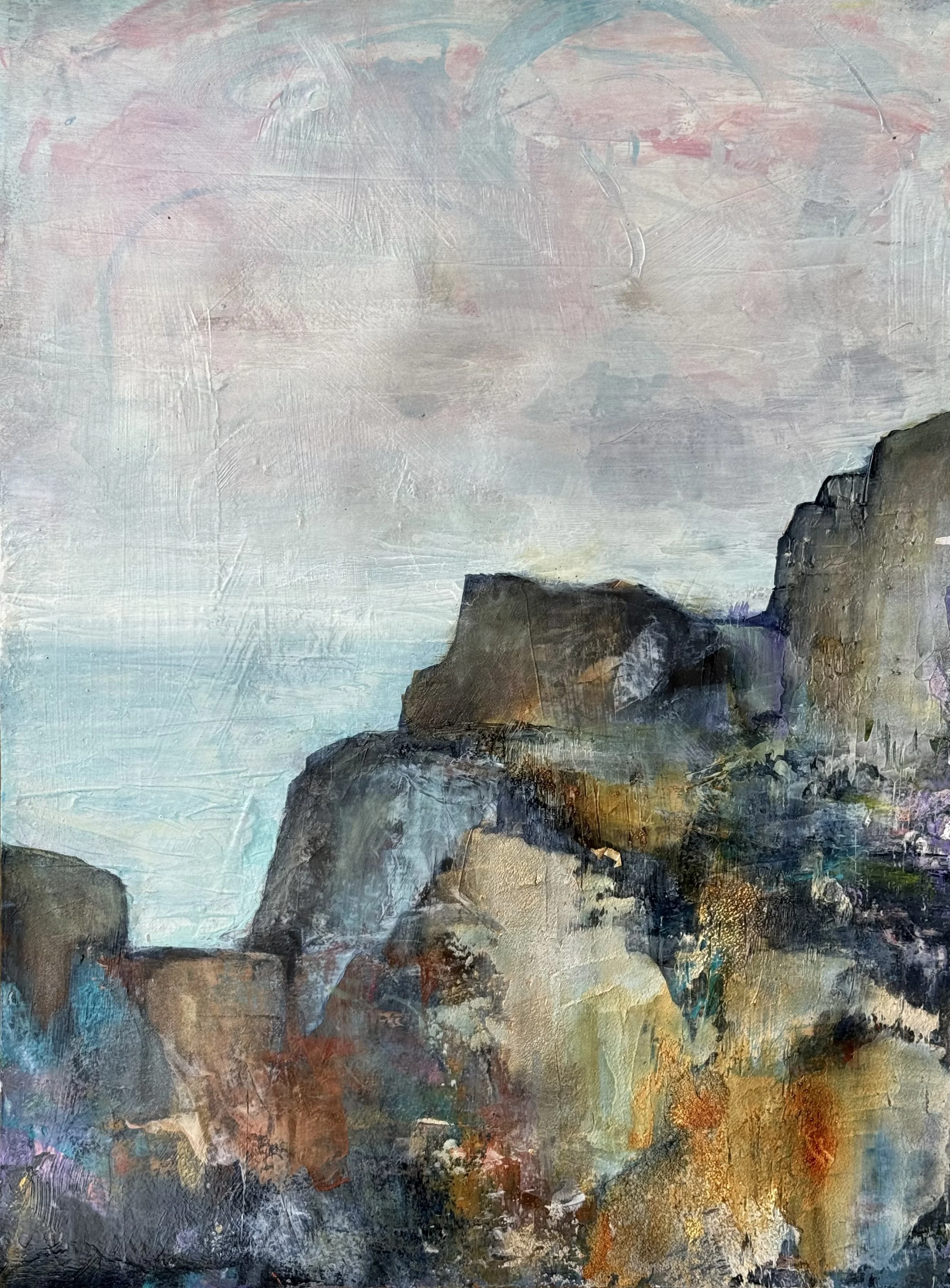For Camille, a blank canvas serves as a bridge between the chaos of the outside world and the deeply human response it evokes. Her creative process begins with full immersion in a landscape—exploring its depths, capturing images, and learning its history. Though her paintings draw from photographic references, she moves forward with intuition, allowing the work to evolve into a more abstract representation of memory and emotion.