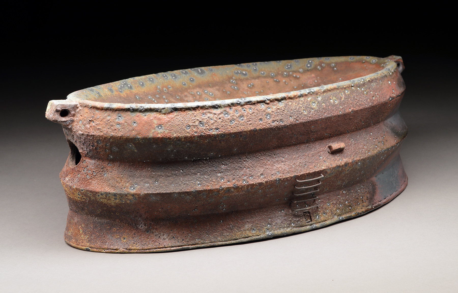 Serving Trough, 2024, Wheel Thrown and Altered Stoneware, 6”x15”x8” Reduction Cooled Wood Fired Stoneware. -