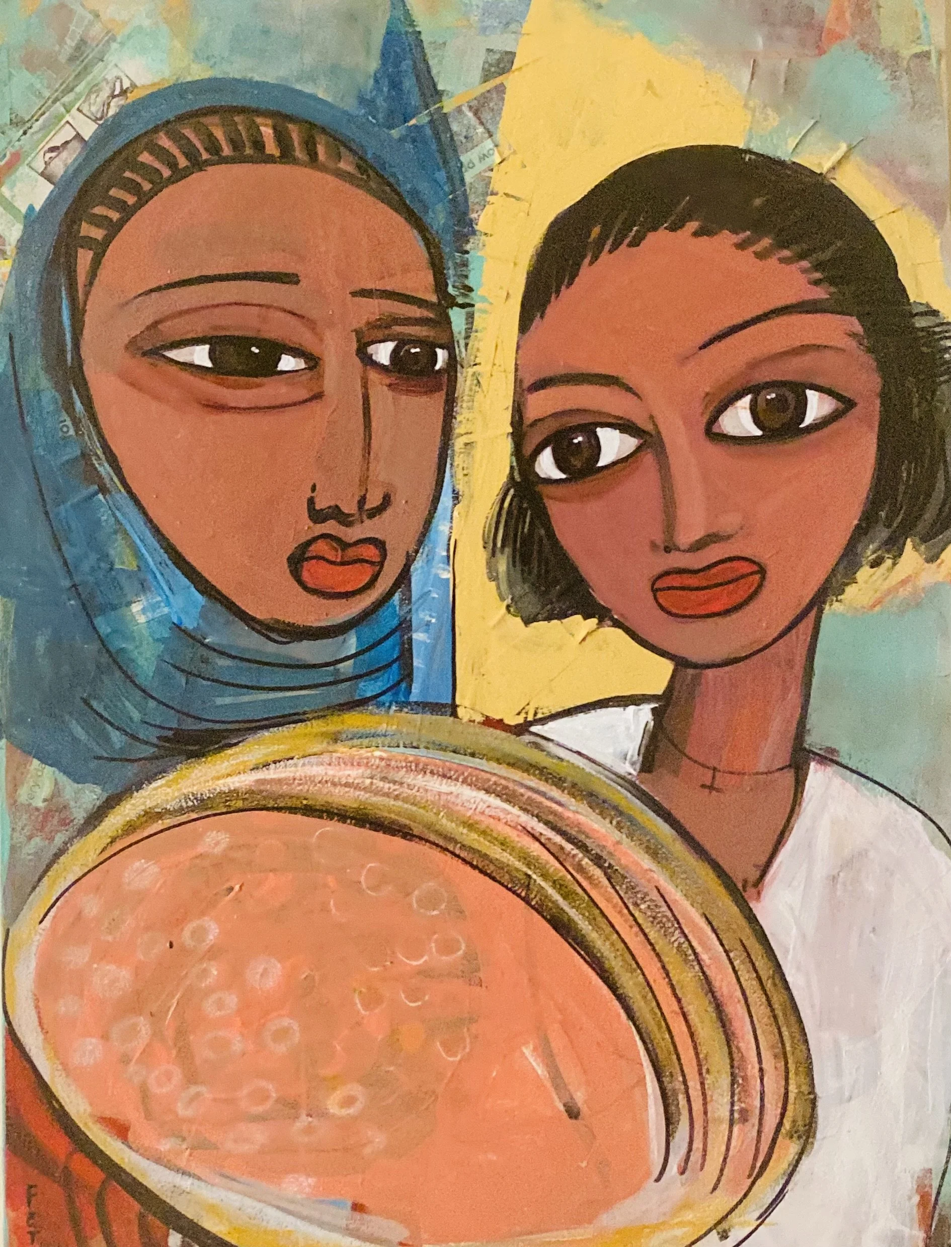 Growing up amidst Ethiopia's bustling markets and profound spiritual traditions, I developed a deep reverence for the beauty and complexity of my homeland. This connection to my roots is further inspired by the rich tradition of Orthodox icons, whose spiritual depth and timeless beauty deeply influence my work. Drawing from their vibrant colors, symbolic compositions, and distinctive flatness, my art seeks to evoke the divine presence and transcendental qualities found in these sacred works.