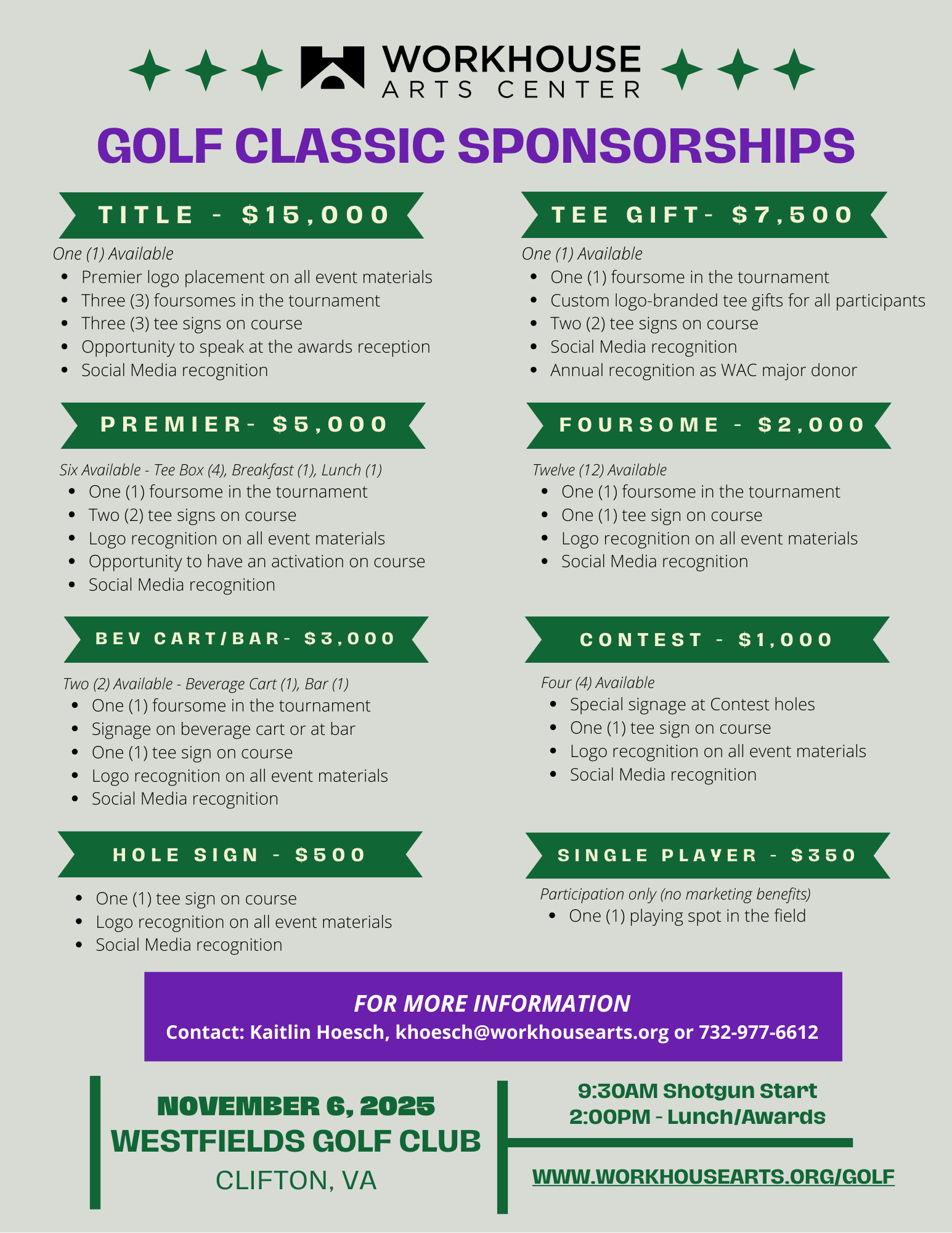 Want to SPONSOR THE 2025 WORKHOUSE GOLF CLASSIC?