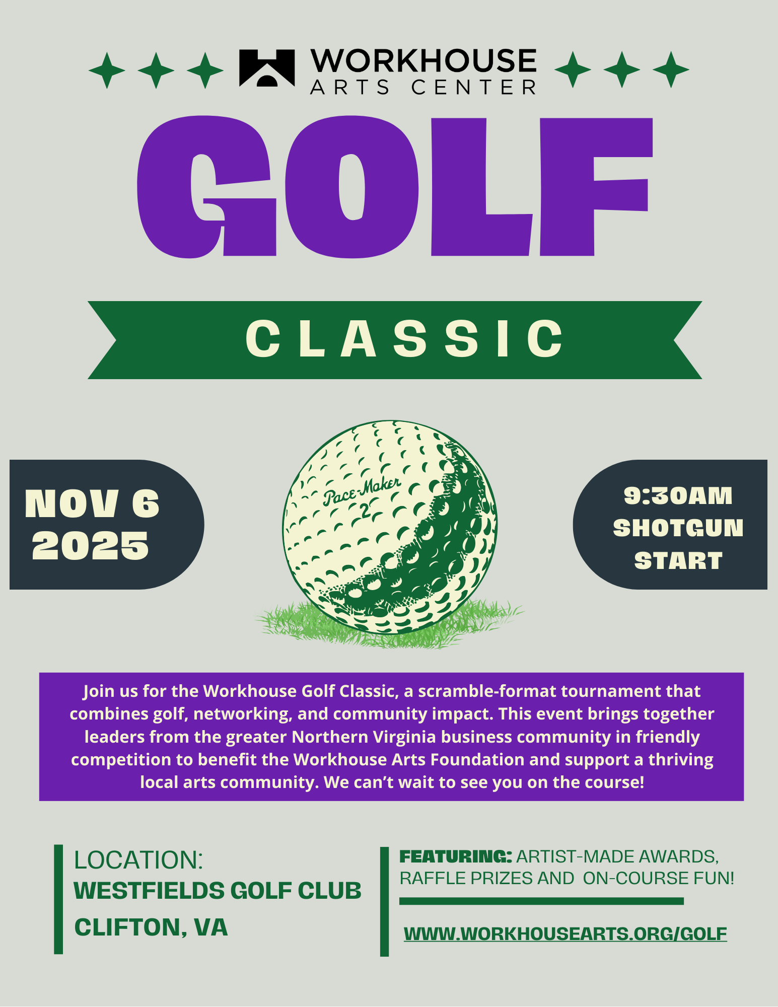 Sponsoring the Workhouse Golf Classic is an incredible opportunity to showcase your support for the arts and raise your business profile in the DMV. As a sponsor, you'll be contributing to the success of this key event and the future of the Workhouse Arts Center, which plays a critical role in enriching the Northern Virginia cultural landscape.