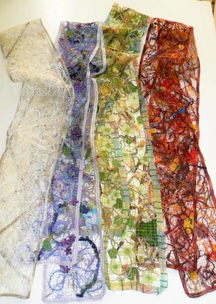Joan is attracted to the fiber arts because of the limitless possibilities of the materials. She loves experimenting with color and texture, working with a variety of techniques, and manipulating materials in unconventional ways to create unique and visually beautiful art and wearable art.