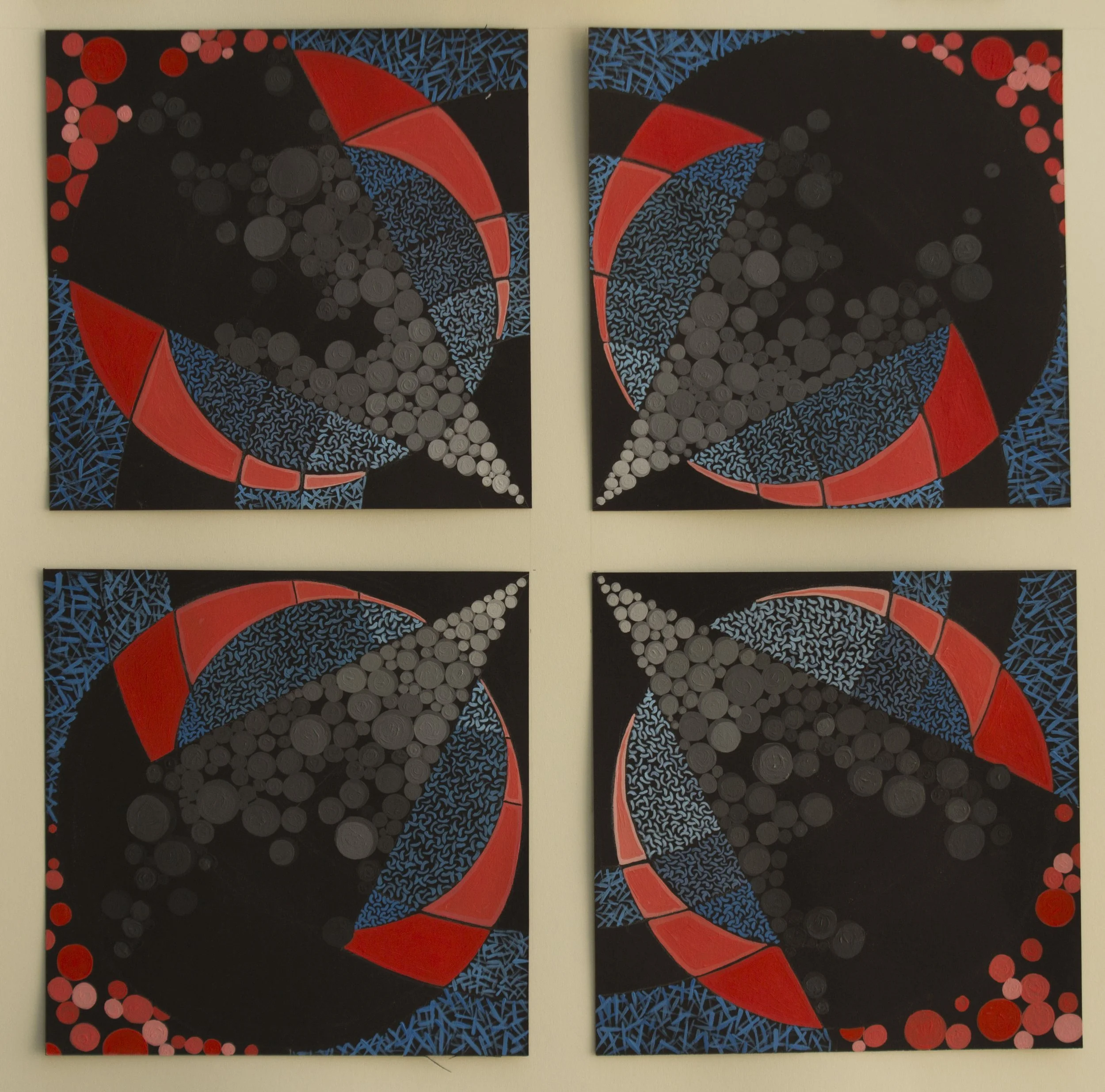 Both Chitra and Nancy rely on the shifting interplay between pattern, color and scale as a way to explore their themes. In this way, their combined work in this exhibition is reminiscent of a kaleidoscope.