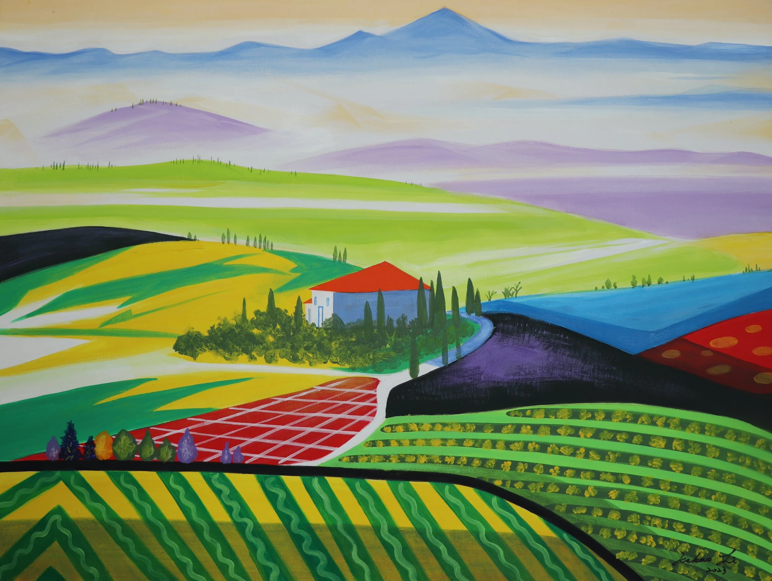 Kebao Li is an artist driven by the pursuit of a distinctive style. His creation, Line Expressionism, masterfully fuses the fluid elegance of Chinese calligraphy with the bold vibrancy of acrylic paints, balancing the abstract with the representational. With years of experience in calligraphy, Kebao’s brushstrokes infuse each piece with motion and elegance as he explores themes ranging from outer space and mythology to love and landscape.