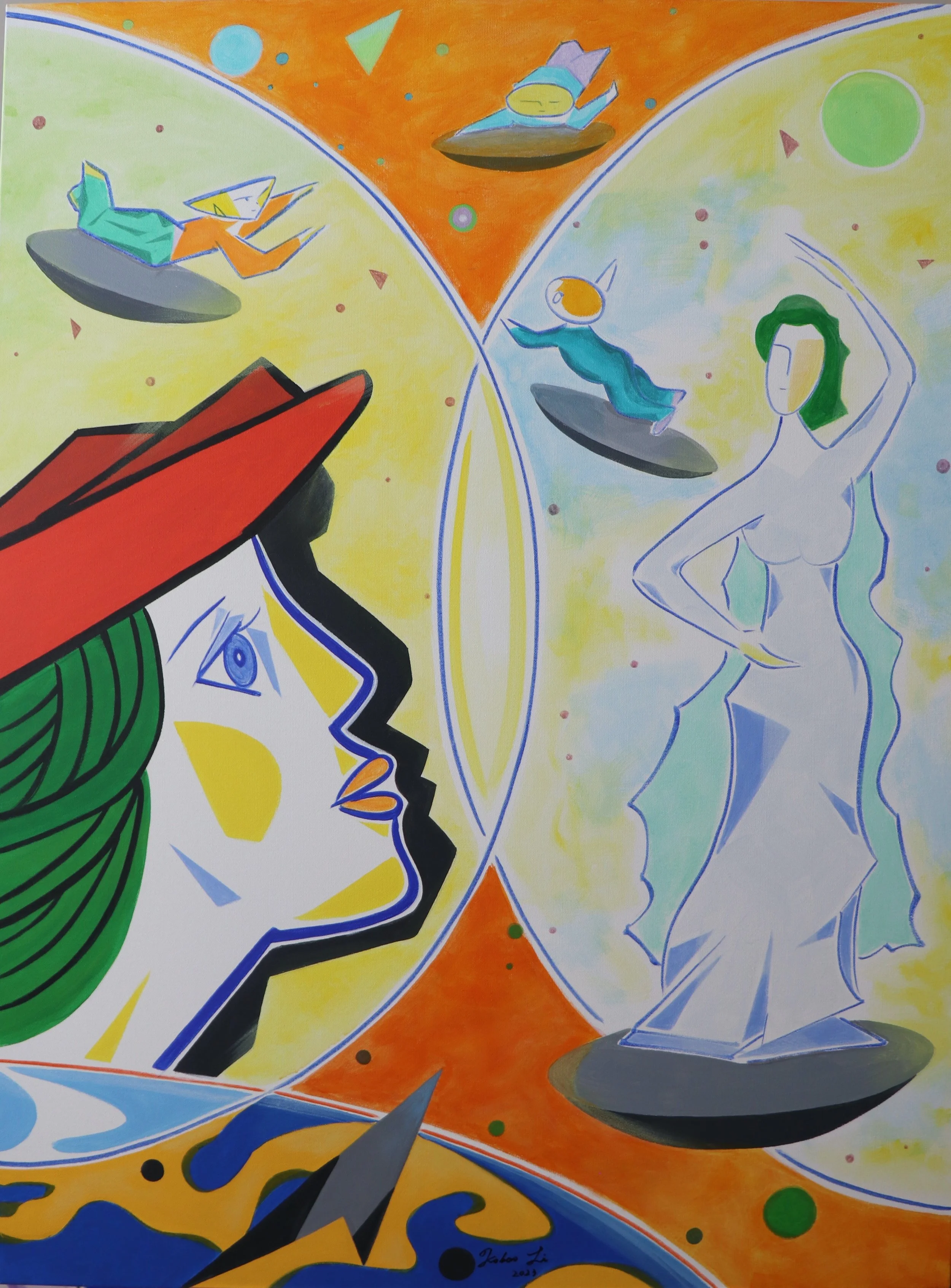 Kebao Li is an artist who immigrated to the United States in 2023 through Extraordinary Ability in art. Proficient in acrylic painting, calligraphy, and traditional Chinese painting, he has recently focused his efforts on acrylics, where he developed his signature style, Line Expressionism. This distinctive approach fuses Chinese calligraphic techniques with acrylic paints and blends abstract with representational forms, bridging Eastern and Western artistic traditions. Influenced by iconic artists such as Picasso, Matisse, de Kooning, and Lichtenstein, Kebao continually reinvents his style, exploring abstract figures, landscapes, and themes inspired by dreams and mythology. His creative vision is driven by a deep understanding of both classical and modern art and shaped by a rich inner world. Kebao's work has garnered recognition through numerous domestic and international awards, with his pieces exhibited in major art shows worldwide. His accomplishments have been highlighted in prominent art publications, and his works have also been collected by both museums and art enthusiasts.
