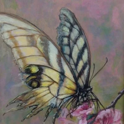 Portraying on canvas a sparkling dew drop on a spider web or the infinitely delicate veins of a butterfly wing or the deep soulful look in an old man’s eye are just some of Laura’s favorite subjects. Sometimes, she keeps the images in black and white to help her stay clean and crisp.