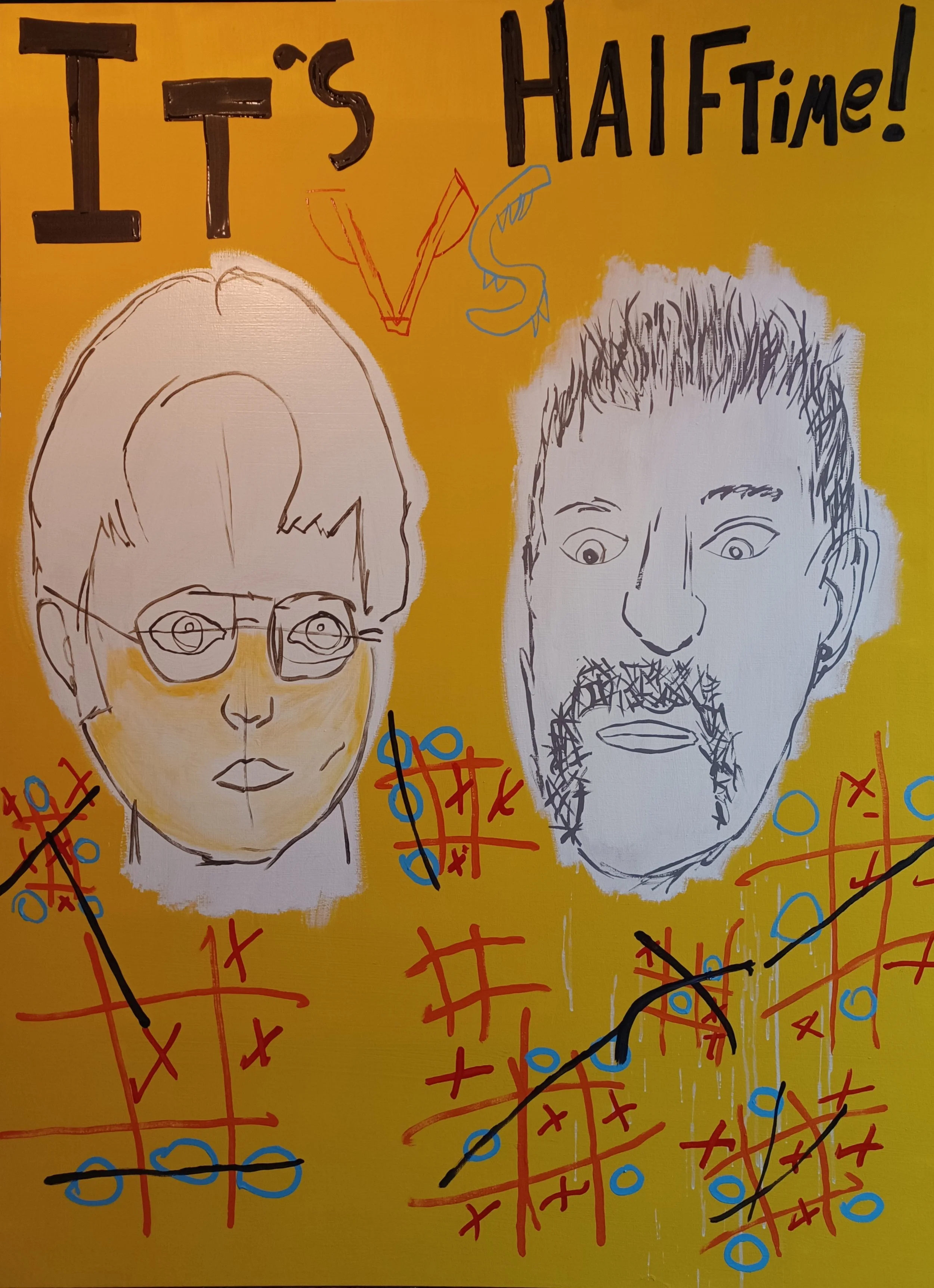 skull blOOd is a family collaboration series, formed from an imaginary band my oldest son created when he was five. The band never came to fruition. This body of work proceeds like the lost album from the band that never existed. Each painting a track; each image a lyric. The paintings are fragmented from desire, discipline, and disregard for rules. Rock-and-roll, where glamour is trained, chewed and performed. This exhibition asks: what does it mean to be well-trained in a culture of display? Like a song stuck on repeat, these images linger: seductive, grotesque, and strangely familiar.
