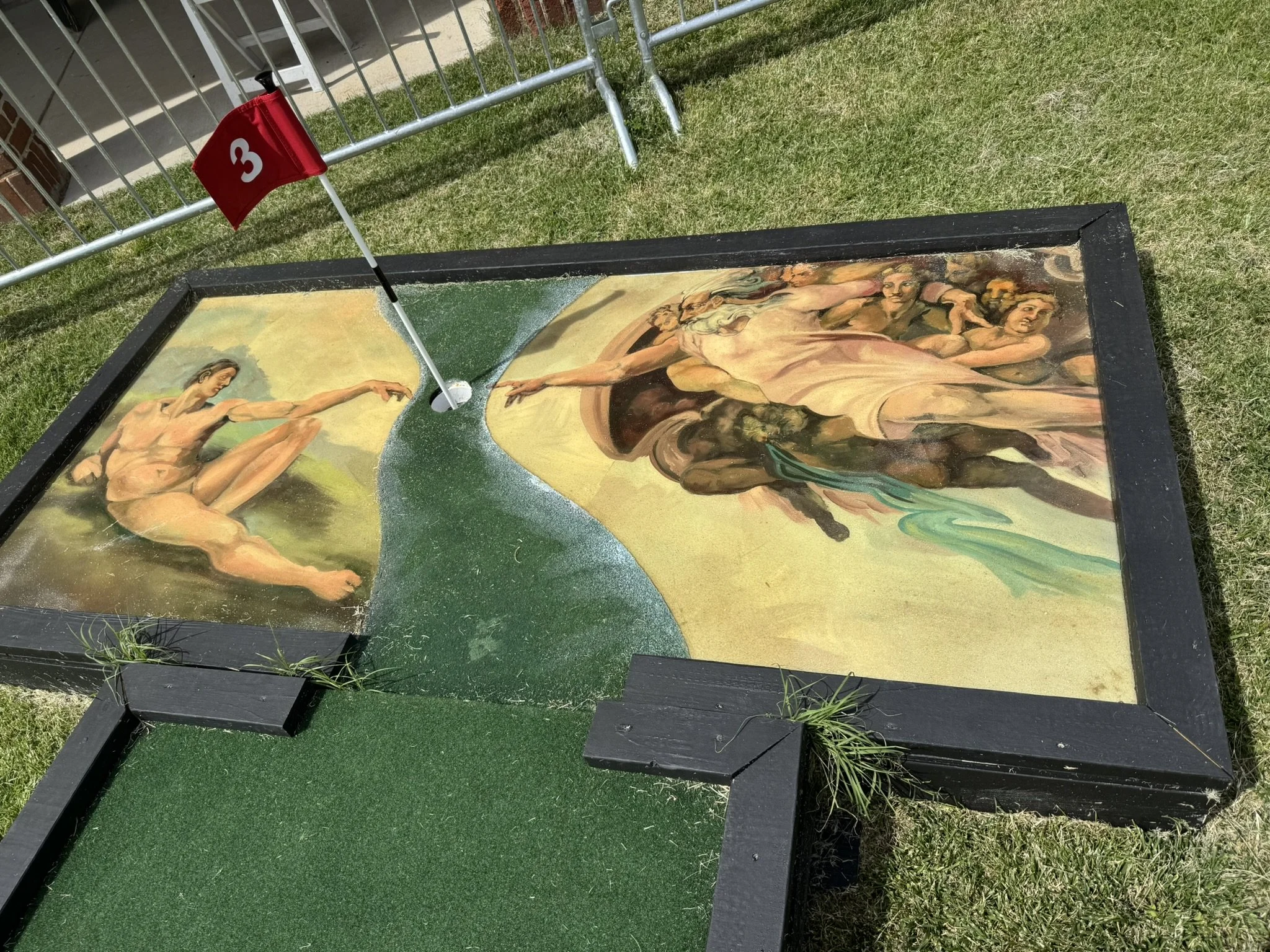 Play your way through 18 art-inspired holes in our colorful outdoor mini golf course! Just $15 for a full day of fun. Enjoy ice cream, snacks, and drinks while you play — fun for all ages!