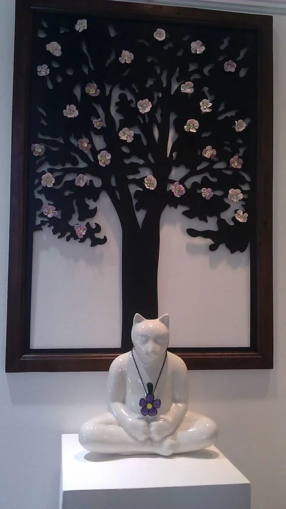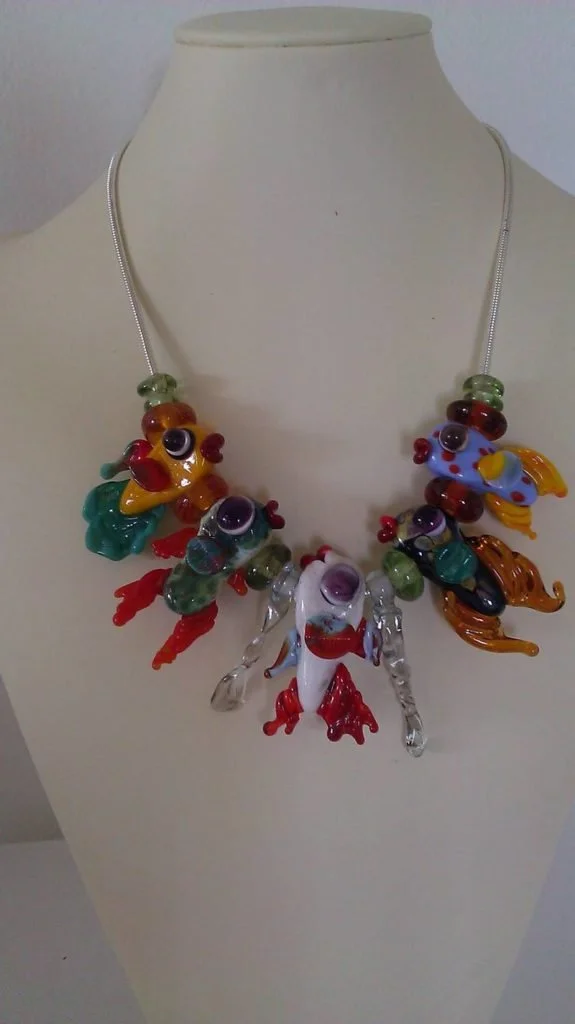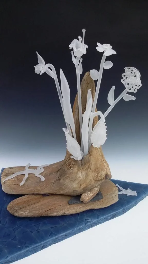 Glass ,as a medium, has a life of it’s own. Blowing glass at her torch opened up a playful world of whimsical creatures, flowers, and people. The goal of her whimsies is to make people smile and feel good.